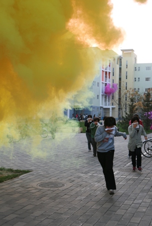 此次活動旨在通過演習提高廣大師生員工的防火安全意識,讓我校師生員工掌握火場逃生的基本方法,學會如何使用滅火器和消防栓。11月6日16時30分,演習總指揮、校黨委副書記盧思鋒下達了“119”消防演習開始的命令。隨著現(xiàn)場模擬火災煙霧升起,伴隨著急促的警報聲,同學們用濕毛巾捂住口鼻迅速有序地從煙霧彌漫的宿舍樓中撤離到安全區(qū)域。疏散演習后,師生員工還觀看了房山區(qū)良鄉(xiāng)消防隊表演的“消防班進攻”。并在良鄉(xiāng)消防隊官兵的指導下進行了實際滅火演練。