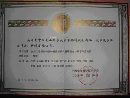 此外,我校參加的該項目獲得了中國食品科學(xué)技術(shù)學(xué)會科技創(chuàng)新獎—技術(shù)進(jìn)步獎一等獎,課題負(fù)責(zé)人陳存社博士獲得獎勵證書。