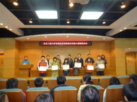 2008年11月,由教務處和化學化工實驗中心主辦,化學與環境工程學院和材料系團委、學生會協辦的“北京工商大學首屆化學實驗基本技能大賽”拉開序幕。競賽以“在實踐中學習,在快樂中收獲”為主旨,分筆試、實驗操作、知識競答三個部分組成。學生們積極踴躍報名參賽,報名參賽的人數達到298人,涵蓋化學與環境工程學院和材料系06、07級各個專業。11月11日,進行了筆試初賽。