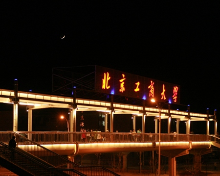 走出會場的每一位觀眾仿佛還都沉浸在歡樂之中,說著,笑著。快樂的時光好像那么的短暫。文體館外,天橋上的彩燈不斷的變換著顏色,照亮了每一個人的笑臉。不知不覺中,一輪新月掛上了天空。歡樂的笑聲和優美的校園夜景仿佛預示著供工商大學將會迎來一個更加美好的2009年。
