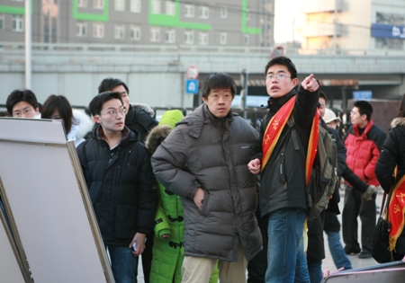1月10日,2009年碩士研究生入學考試正式開始,我校阜成路考點一早就開始了緊張而有序地工作,所有工作人員都在開考前40分鐘就位;校領導親自到各考場現場指導工作。研究生部在考場周圍掛橫幅、放置溫馨提示牌、考場分布示意圖等,還安排了志愿者咨詢服務崗,同時為考生準備了巧克力、熱水,并為考生提供中午休息的場所。相關部門也積極展開工作給考生營造了一個方便、周到、輕松的考試環境。考生自覺遵守考場紀律,積極配合工作人員確保安全有序。