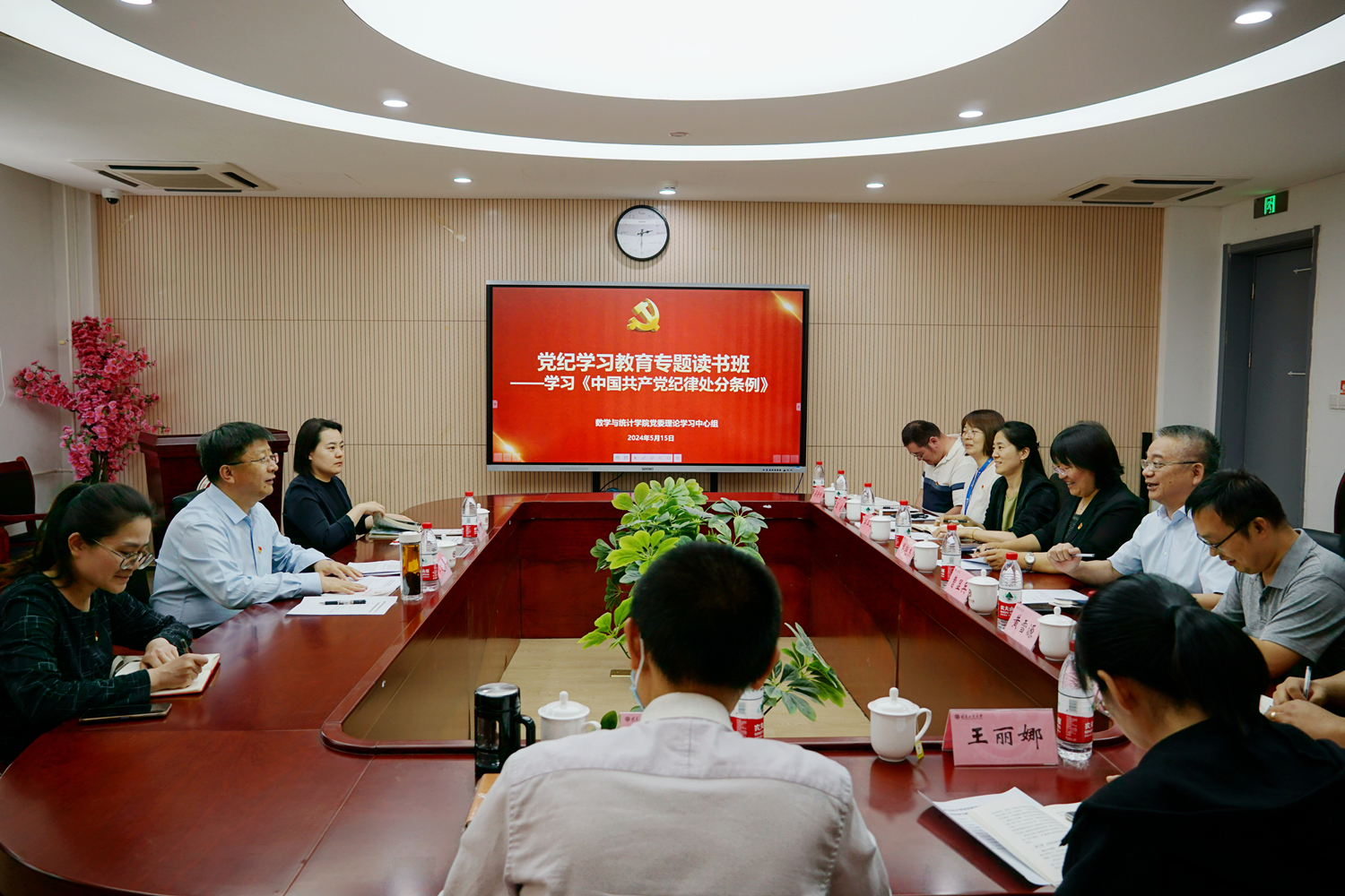 按照學校關于開展黨紀學習教育的工作部署,5月15日,數學與統計學院黨委理論學習中心組開展專題讀書班,在個人自學的基礎上,集中學習《中國共產黨紀律處分條例》(以下簡稱“《條例》”)。學校黨委副書記、校長郭建華,學校黨政辦公室副主任張揚,黨委宣傳部副部長徐洪,學院黨委理論學習中心組成員、教師黨支部書記參加讀書班。讀書班由學院黨委書記周艷杰主持。
