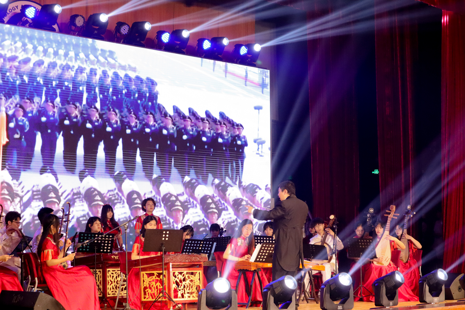 本次晚會的的特色之一就是搭建了別具創意的右側副舞臺,這個設計使整個舞臺既似水滴,又似留聲機。寓意一滴水只有融入大海才不會干涸,一個音符只有跳進一首曲子,才不會乏味,巧妙的比喻了學生與學校的關系。