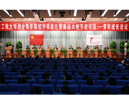 “北京工商大學共青團創業青年夜校開學典禮暨北京奧運火炬手進校園•青年成長論壇”活動3月12日晚在北京工商大學隆重舉行。校黨委副書記盧思鋒,團市委大學部部長胡九龍,團市委機關工會主席、北京共青團創業青年夜校負責人劉蓉,火炬手聯盟副主席海龍集團董事長魯瑞清、黃海軍、朱家敏等十多位火炬手應邀出席了本次活動。