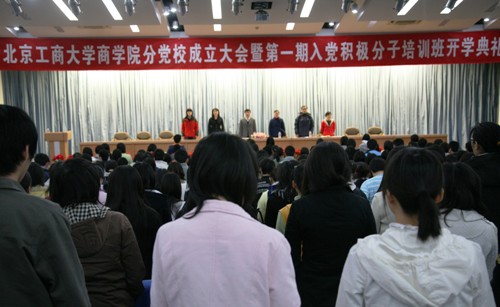 學校黨校商學院分黨校第一期入黨積極分子培訓班有學員近400人,其中包括外國語學院入黨積極分子21名。參加入黨積極分子培訓班學習的學生,前期均經過團支部推薦,經過黨支部審核、分黨校確定,并報學校黨校備案。商學院分黨校嚴格按照學校《北京工商大學黨校分校工作實施細則》的要求認真做好了各方面準備。