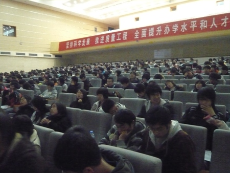 主講人張萌與劉益磊先后向同學們介紹了微軟的內部人員概況、微軟的新一代產品windows7,以及微軟在全國高校進行校園招聘的流程。