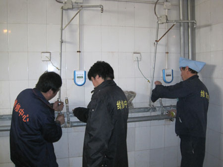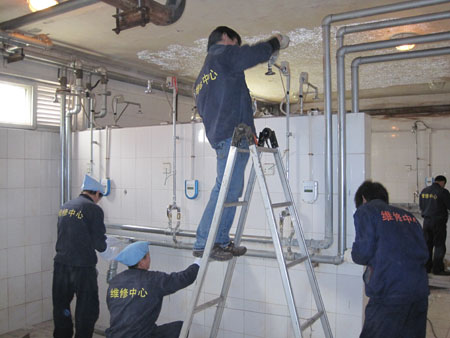 在維修人員的共同努力下,5個浴室的200個噴頭過濾網全部被拆下清洗,解決了出水量小、水垢堵塞問題;對2組團(浴室)進行了試點改造,共改裝噴頭40個,安裝混水器40個、止回閥80個,安裝洗浴用品支架30個,并對燈光、通風設備進行了檢修,對內部管線作除銹、防腐處理;對其它4個浴室的全部直通閥、電動閥進行了維修、更換。