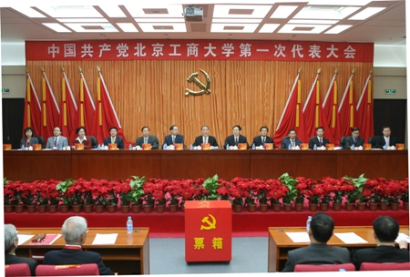 中國共產黨北京工商大學第一次代表大會在選舉產生新一屆學校黨委委員和紀律檢查委員 ,通過關于中國共產黨北京工商大學委員會報告的決議、關于中國共產黨北京工商大學紀律檢查委員會工作報告的決議后,59日下午五時在良鄉校區勝利閉幕。