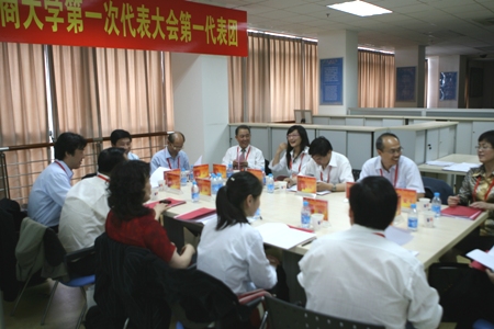 第九代表團成員來自機關行政單位,副校長張耘參加座談討論。代表們一致認為黨委、紀委工作報告全面、客觀、實事求是地總結了過去十年我校工作和發展的成功經驗,為學校今后五年的發展指出了具體明確的方向。副校長張耘指出,要進一步改善二級管理模式,做好資產配置、財務管理等工作。代表魏中龍提出,要建設有高水平的教授隊伍和管理隊伍。代表孫家躍表示,合并以來我校領導十分重視科研工作,科研經費大幅增加,報告中的科研目標定位準確。熱烈討論中,大家還為報告提出了很多細致的建議。