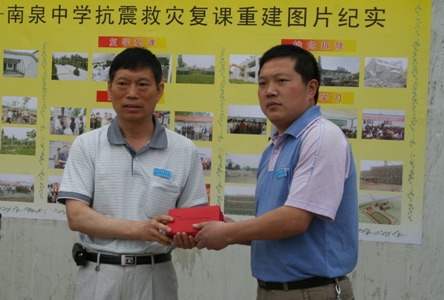 在5.12汶川特大地震一周年之際,受學校委托,機關黨委書記嚴書河和校工會干部尹寶星代表學校和廣大教職工到什邡市南泉中學開展慰問活動。