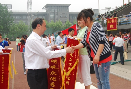 接著,黨委宣傳部部長刁晶輝宣布“現場氣氛優秀集體獎”、“組織參與優秀集體獎”和“文明觀眾優秀集體獎”的獲獎單位。其中“文明觀眾優秀集體獎”由材料科學與工程系、法學院、研究生部、繼續教育學院獲得,“現場氣氛優秀集體獎”由商學院、計算機與信息工程學院、經濟學院、藝術與傳播學院獲得,“組織參與優秀集體獎”由機械工程學院、嘉華學院、化學與環境工程學院、外國語學院獲得。