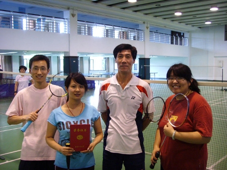 我校2009年第二屆教工羽毛球比賽于2009318開始,歷時兩個半月,于63結束,機關二分工會取得了混雙第一名(白利強、高芳)、女雙第二名(高芳、李冉)、男雙第三名(白利強、劉長泉)的佳績。