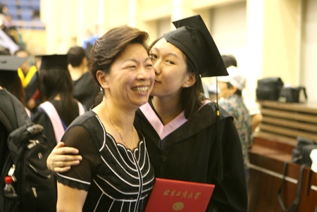 孩子畢業,家長高興。校園里,家長都在用充滿喜悅與滿足的眼神看著自己的孩子。記者采訪了幾位家長,了解到有的家長今天很早就已經起床了,然后驅車趕往這里。有位家長還因為暈車吐了,但這仍沒有破壞他們的好心情。一位家長講,四年來她來過北工商很多次,每一次都有不同感受。他們對校園環境 各種設施十分滿意,并且感謝學校為孩子提供的如此優越的環境。當被問及家長對孩子有什么期望時,這位家長很平靜地說:“沒什么高期望,只要他能做自己喜歡的事就好.”這句話代表了一部分80后家長的看法——放開孩子的手,別給他們太多壓力,讓他們自己去闖!祝每一個畢業生都能在離開母校后創造出人生新的輝煌!