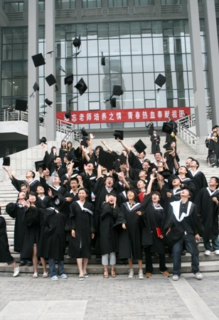法學院黨總支副書記文四英老師也在圖書館前和畢業同學合影,慶祝。她說:“看著學生就要走了,自己的心情也很復雜,在慶祝的同時也難掩內心的傷感。當學生高高拋起學士帽,宣告自己畢業的時候,我也想到自己大學畢業的時候了。作為老師我希望畢業的同學多和校友、和老師聯系,無論以后發展怎樣了,母校永遠是大家心靈的港灣。我們都還年輕,學無止境,走上工作崗位的也要加強學習,不斷進步。剛走上工作崗位的學子,難免會遇到挫折,我們要有這個心理承受能力。最后祝愿同學們都有一個美好的前途和愿景!”