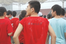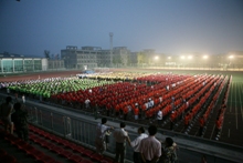 踏著歌曲《東方紅》的音樂節奏,同學們排著整齊的隊伍前進,他們揮動著手中的花環經過操場觀禮臺,雄健的步伐與標準的動作展示著他們刻苦訓練的成果和堅韌不拔的意志。手持花環的動作是本周訓練新增內容。雖然是首次集體合練,但是在王立紅老師的指揮與同學們的齊心努力下,大家基本做到了統一標準。千人花環表演的壯觀場面,得到了領導們的高度評價。