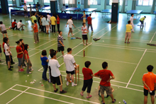 考核開(kāi)始后,學(xué)生們自信接受考驗(yàn)。乒乓場(chǎng)地,乒乓球敲擊桌子的聲音清脆響亮,此起彼伏;一旁的羽毛球場(chǎng)地正在進(jìn)行緊張的雙人“廝殺”;而太極場(chǎng)地的學(xué)生們則顯得莊重沉穩(wěn)、從容不迫。來(lái)自機(jī)械08的一位學(xué)生,面帶微笑從容完成了乒乓球測(cè)試,取得優(yōu)異成績(jī)。之后,他主動(dòng)幫助待考同學(xué)練習(xí),指導(dǎo)動(dòng)作要領(lǐng)。互助友愛(ài)的場(chǎng)面令人備感溫馨。
