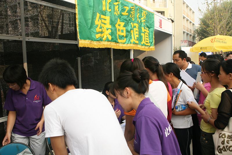 91日,我校迎來了朝氣蓬勃、臉上掛滿笑容的2009級新生,美麗的校園充滿著喜慶、歡樂的氣氛。校門口和天橋上“歡迎新同學”幾個大字格外醒目,兩個燈籠紅柱挺立在校門口兩側,鮮艷的中國紅彰顯出一片喜氣洋洋的熱鬧景象,紅柱上寫著“新征程、新輝煌;新起點、新目標”,寄予了對新生的期待與希望。道路兩旁更是排滿了前來送新生的車輛,宛如兩條長龍,蜿蜒在陽光大街兩側。