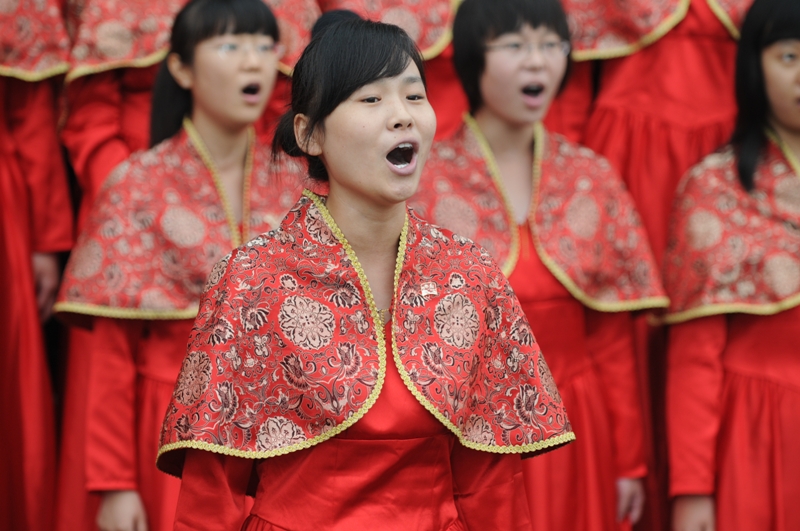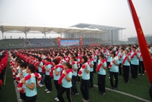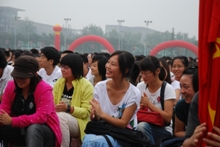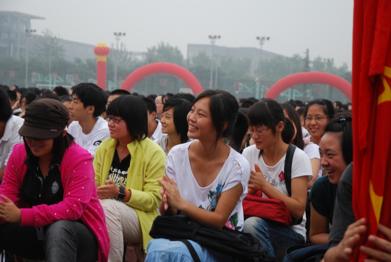 接著,我校參加國慶廣場合唱、聯歡、方陣任務的三支隊伍接受校領導檢閱,并為新生表演成為開學典禮的最大亮點。參加廣場合唱和聯歡的同學進行了與上次合練不同的表演,優美的歌聲、動感的舞姿再次成為了全場目光的焦點。鮮亮的花環,整齊的動作,響亮的口號……參加方陣訓練師生也用最短的時間充分了展示了暑假艱苦訓練的成果,并且得到了校領導和09級同學的熱烈掌聲。