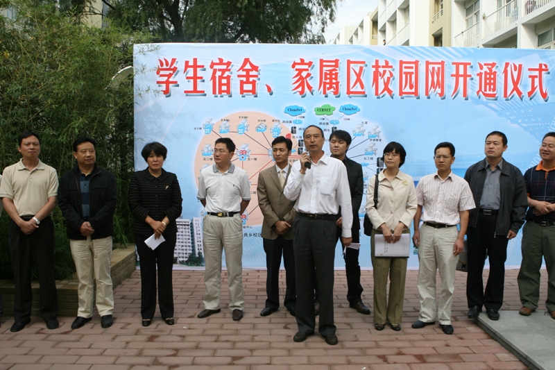 9月8日,學校在良鄉校區學生生活區竹園舉行了學生宿舍、家屬樓校園網開通儀式。校領導盧思鋒、李朝鮮出席開通儀式。