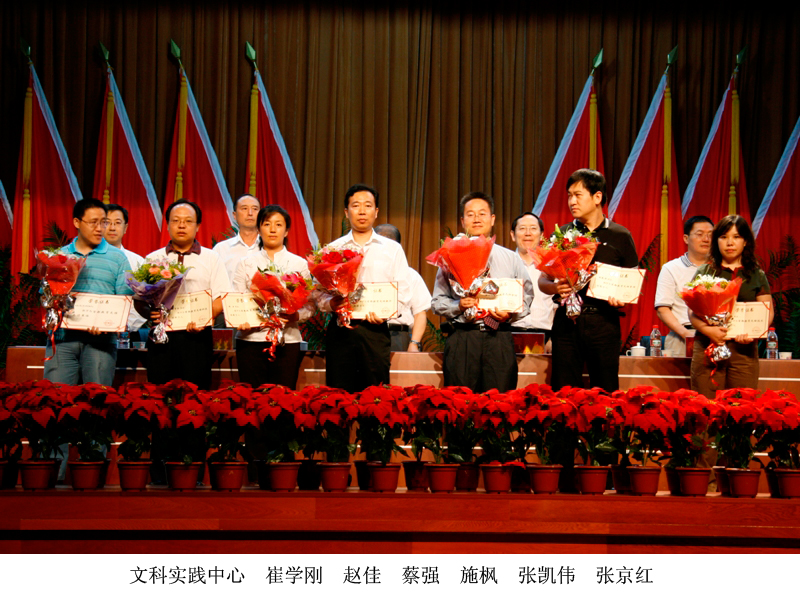 校領導向獲得北京市優秀教師的秦艷梅、李寶河,獲得北京市優秀教育工作者的李仁玉,獲得北京市優秀工會積極分子的劉晶,獲得北京高校第六屆青年教師教學基本功比賽理工B組一等獎、北京高校第六屆青年教師教學基本功比賽理工B組最受學生歡迎獎、北京高校第六屆青年教師教學基本功比賽理工B組最佳教案獎的胡蓉,獲得首都教育先鋒先進集體的文科實踐中心,獲得首都教育先鋒科技創新(先進)個人的崔學剛,獲得首都教育先鋒教學創新(先進)個人的趙佳、蔡強,獲得首都教育先鋒管理創新(先進)個人的施楓、張凱偉,獲得首都教育先鋒技術創新(先進)個人的張京紅頒發了獎勵證書,學生代表向獲獎教師敬獻了鮮花。