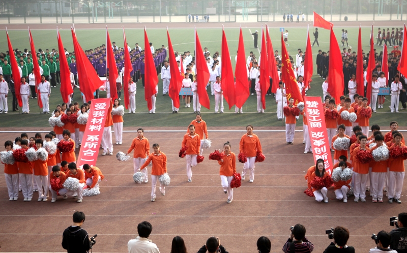 伴著激昂的旋律,邁著整齊的步伐,經(jīng)濟(jì)學(xué)院率先入場(chǎng)。一張張可愛(ài)的笑臉,充滿(mǎn)著對(duì)勝利的憧憬;鏗鏘有力的步伐,昭示著他們必勝的信心。洋溢著青春活力的啦啦隊(duì)跟隨歡快的節(jié)拍盡情舞蹈,為早晨微涼的空氣帶來(lái)熱情的溫度。