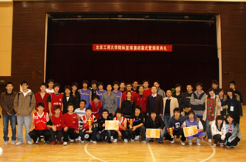 北京工商大學2009年秋季籃球聯賽于1125日下午1330在良鄉校區文體館開賽。此次籃球聯賽決賽也是我校良鄉校區第一次在文體館進行正式比賽,體現了學校倡導的“共建共享”的理念。校體育與藝術教學部主任顧紅、副主任陳新、校團委書記呂良、副書記吳智鵬、計算機與信息工程學院團總支書記曹卉、機械工程學院團總支書記鄧浩來到現場,為球員們加油助陣。校體育與藝術教育部王少華老師擔任比賽主裁。