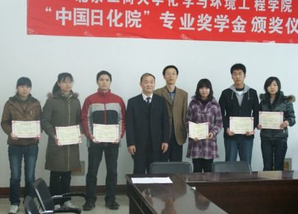 “中國日化院”專業獎學金由中國日用化學工業研究院出資設立,從2008年起,每年無償出資2萬元人民幣定向我校化學與環境工程學院應用化學專業二、三年級優秀學生,旨在鼓勵和引導學生認真學習專業知識,畢業后積極投身于洗滌劑、表面活性劑相關專業的生產和科研工作中。