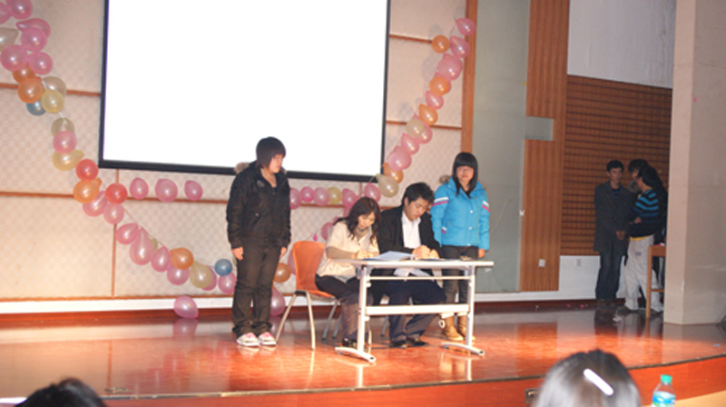 11月26日晚外國語學(xué)院主辦的第三屆“友誼杯”英文才藝大賽決賽在良鄉(xiāng)校區(qū)學(xué)生活動中心舉行。外國語學(xué)院黨總支副書記楊秀萍、團(tuán)總支書記鄭建高,美國教育中心北京市朝陽區(qū)留美語言培訓(xùn)學(xué)校市場部經(jīng)理郭德環(huán)和市場部培訓(xùn)專員(我院09屆畢業(yè)生)祖玉卉,以及各院系學(xué)生會主席、全校觀看比賽的同學(xué)約150人參加。本次大賽邀請外國語學(xué)院英語系教師孔海龍、公共外語教學(xué)部教師劉紅等專業(yè)人士擔(dān)當(dāng)評委。