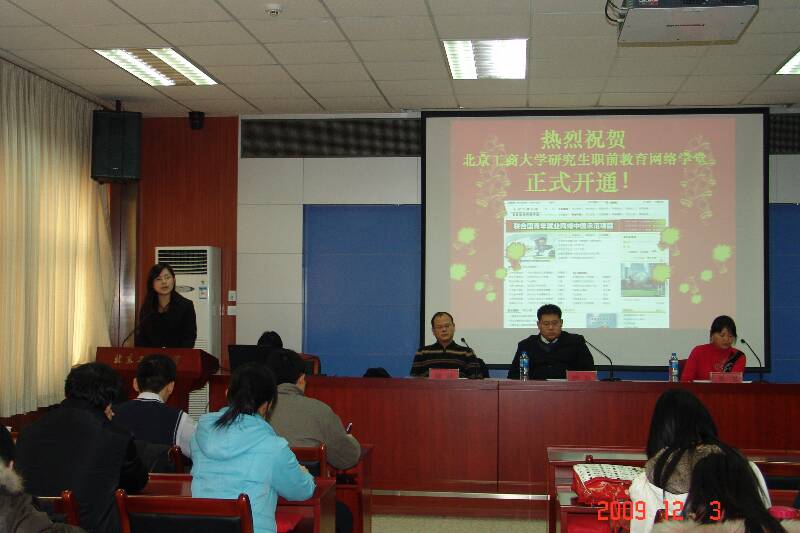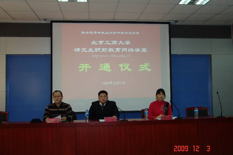 123下午,為了進一步加強研究生就業指導工作,提高研究生的就業能力,我校引進了“聯合國青年就業網絡中國示范項目”,開通了“北京工商大學研究生職前教育網絡學堂”,開通儀式在阜成路校區教三樓351教室舉行。研究生部黨總支副書記熊慧、學校就業指導中心主任楊林以及時代英杰國際教育科技(北京)有限公司市場部經理劉旭先生出席了開通儀式。參加儀式的還有研究生會及各班研究生代表。