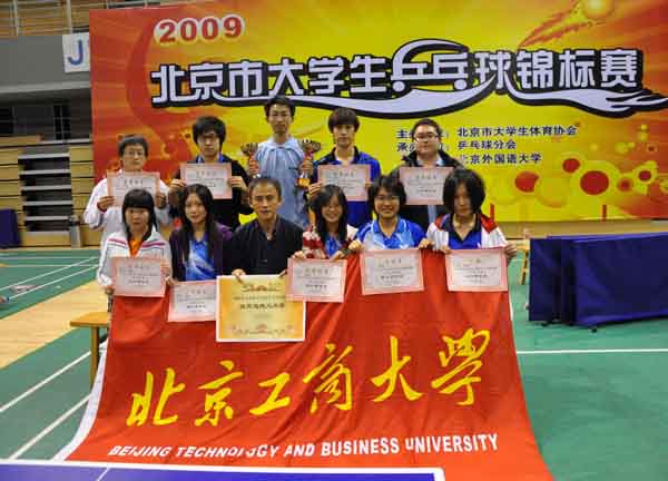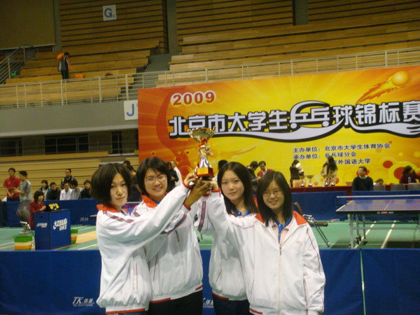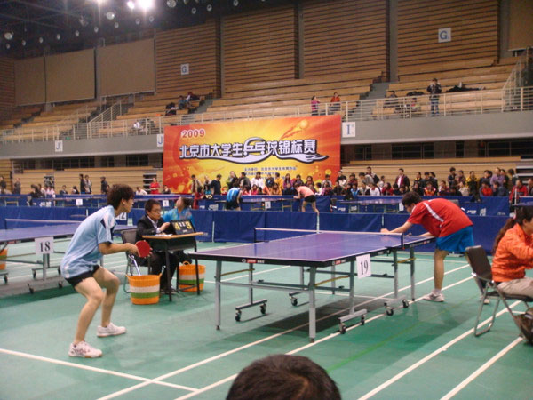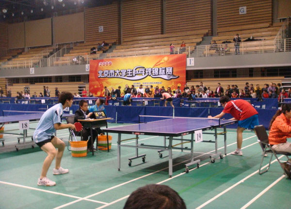 2009年北京市大學生乒乓球錦標賽于125日、6日在北京外國語大學舉行。這次比賽是由北京市大學生體育協會、大體協乒乓球分會主辦,北京外國語大學承辦。在為期2天的比賽期間,云集了北京外國語大學、清華大學、北京大學、中國人民大學等38所高校的300多名乒乓球精英參賽。