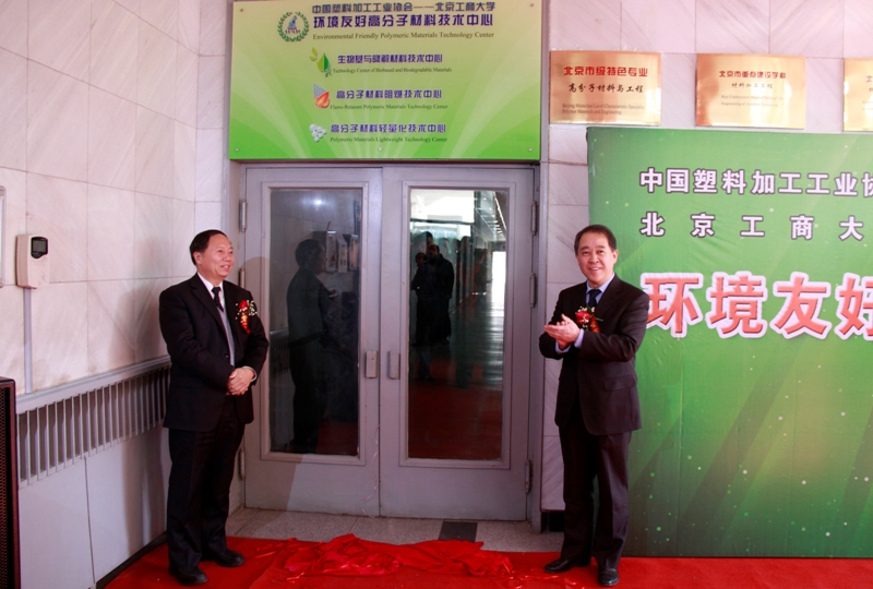 12月18日,“中國塑料加工工業協會-北京工商大學環境友好高分子材料技術中心”在北京工商大學掛牌成立。中國輕工業聯合會步正發會長、王世成副會長和杜同和副會長出席掛牌儀式。步正發會長與北京工商大學孫堯東書記共同揭牌。掛牌儀式由北京工商大學黨委副書記盧思鋒主持,中國塑料加工工業協會廖正品會長和北京工商大學副校長、中國工程院院士孫寶國教授分別致辭。