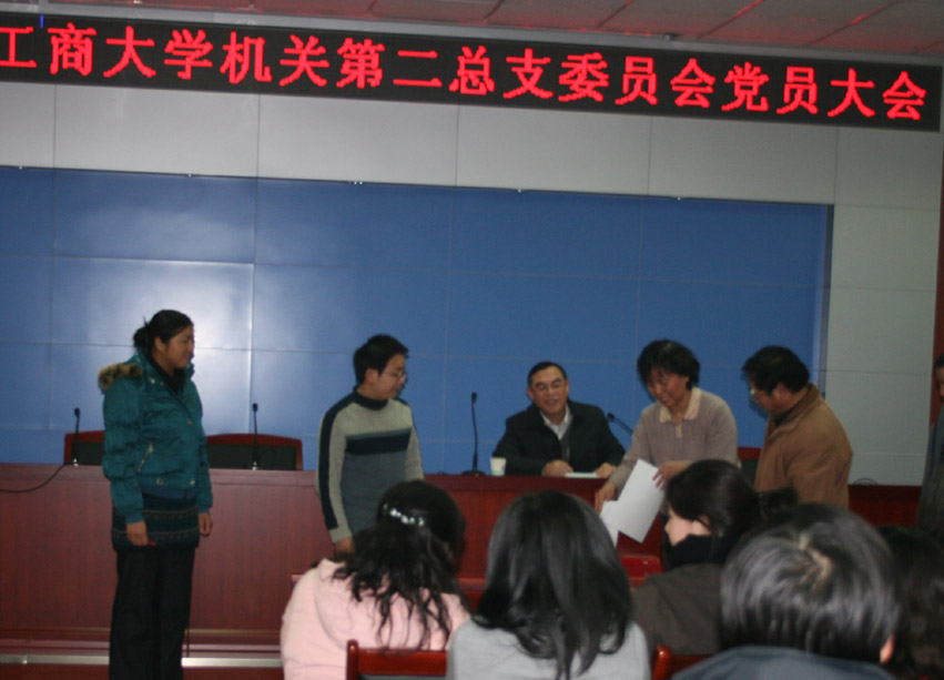郭一行同志首先介紹了機關二總支成立組建的背景和過程,以及總支委員候選人的提名和醞釀情況,介紹了候選人簡歷。并提請大會通過了選舉辦法和計票人、監(jiān)票人推薦名單。大會按照程序,以無記名投票的方式,選舉產(chǎn)生了新組建的機關二總支第一屆委員:郭一行、嚴書河、宋冬英、李艷芬、孔凡航、宋煜、趙麗君、楊本順和房成鑫。郭一行代表新一屆總支委員發(fā)言,指出機關二黨總支在學校黨委的正確領導下,奮力拼搏,銳意進取,將進一步加強組織建設,發(fā)揮黨員模范帶頭作用,積極為教學科研和學校管理工作服務,同時也指出了機關工作存在的問題和今后努力的方向。