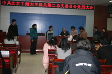根據(jù)《中國共產(chǎn)黨章程》和《中國共產(chǎn)黨基層組織選舉工作暫行條例》,經(jīng)學校黨委批準,機關二總支黨員大會于1月19日下午在阜成路校區(qū)教三樓351召開,選舉產(chǎn)生機關二總支第一屆委員會。會議由圖書館副館長郭一行同志主持,機關二總支所轄九個支部91名黨員參加了會議,黨委組織部張秋霞同志出席大會并監(jiān)督大會選舉過程。