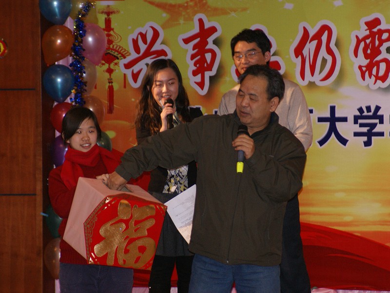 在學生處主辦的聯會活動上,老師們上演了自編自演的文藝節目。現場還有搶凳子、抽獎等互動小游戲。在歡快的樂曲生與歡笑聲中,在美食與美酒的飄香中,大家回顧一年來的收獲體會,回憶著與學校一起進步的365個日子,并互相致以美好溫馨節目的祝福,暢想更加燦爛的明天。會場其樂融融。