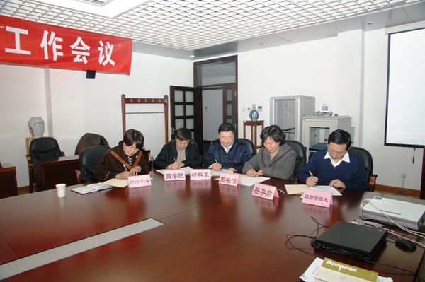 會上,學校領導與商學院、材料科學與工程系、后勤管理處、圖書館和網絡中心簽訂了2010年《推進平安校園建設、維護學校安全穩定責任書》。