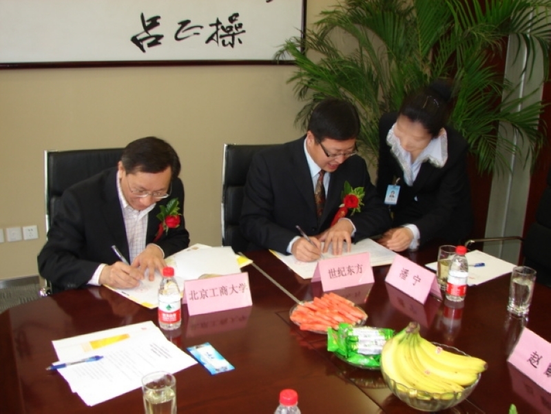 3月19日,機械工程學院與“北京世紀東方國鐵科技股份有限公司”舉行了實習基地簽約儀式。副校長謝志華、豐臺園區管委會副主任劉少華、機械工程學院院長張力、黨總支書記呂東燕、企方總裁田秀臣、董事長田秀華出席簽約儀式。