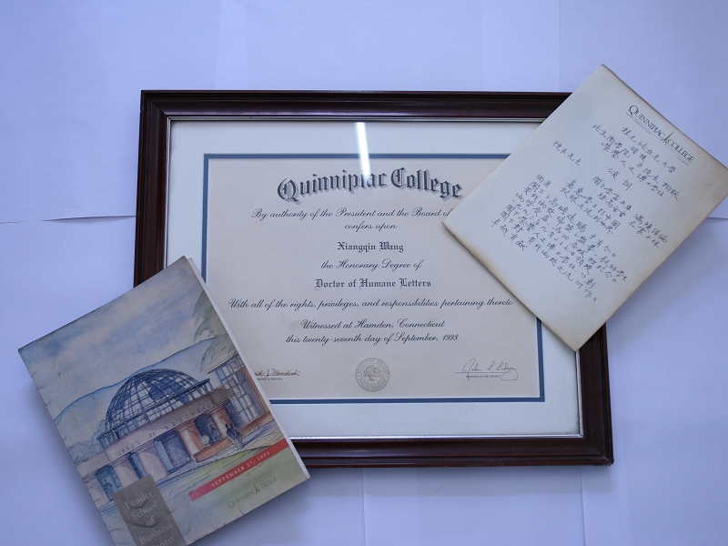 4月1日,原北京商學院院長王相欽同志將自己珍藏40多年的工作證、工會會員證、注有批示的講義手稿、參加“四清”工作時的手稿材料、1993年獲美國昆尼皮埃克學院人文學榮譽博士學位的證書等珍貴史料捐贈給校史館。