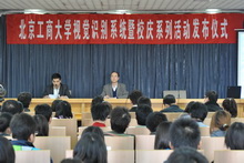 4月13日下午,北京工商大學視覺識別系統暨校慶系列活動發布儀式在良鄉校區隆重舉行。校黨委副書記盧思鋒出席儀式并作重要講話。儀式由校慶辦公室主任張曉磊主持。工會常務副主席韓寶龍、學生處處長呂素香、宣傳部副部長袁小年、團委書記呂良、部分教師學生代表及應邀前來的《中國教育報》、《科學時報》等媒體代表參加了儀式。