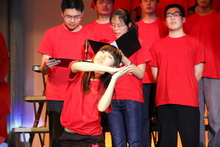 多才多藝的注會092班,舒緩的鋼琴演奏,悠揚的笛音,抑揚頓挫的詩歌朗誦讓大家不禁為之喝彩;工商092班漸變的節奏以及穿插在演唱中的的手語博得了陣陣掌聲;財務092穿透賽場的豪邁氣勢讓人為之震撼;工商095班大氣而恢弘的陣勢,獨特的領唱,高昂的激情得到了全場的認可。