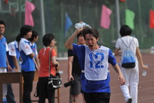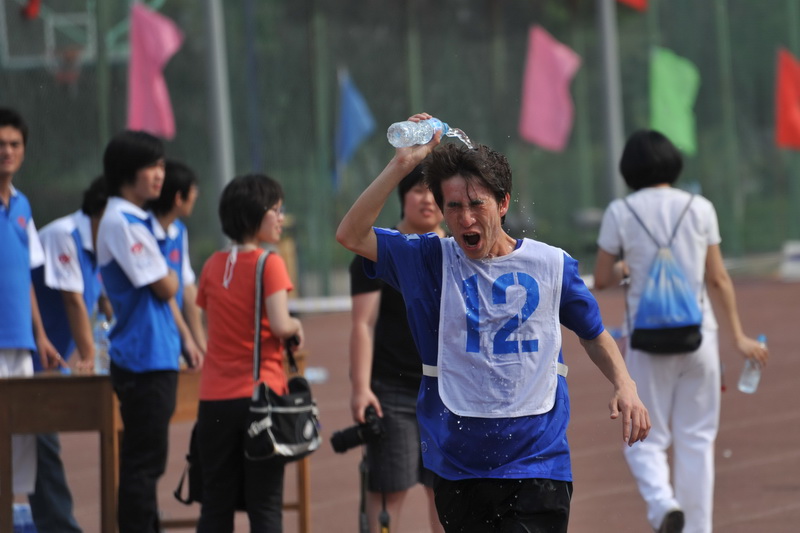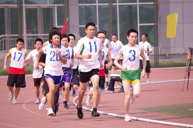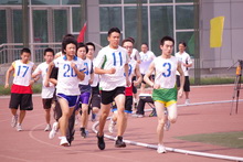 艷陽(yáng)的金色洗亮了跑道,青春的旋律譜成了一首悠揚(yáng)歌,充滿激情的心則是美妙的音符。北京時(shí)間5月22日15:30分左右,在歷經(jīng)19分25秒70的頑強(qiáng)拼搏后,藝術(shù)與傳媒學(xué)院的王柯終于摘得了本次運(yùn)動(dòng)會(huì)男子5000米比賽的桂冠。綠蔭場(chǎng)上,24個(gè)矯健的身軀匯成了一道亮麗的風(fēng)景線: “各就各位,預(yù)備——”,隨著“砰”的一聲槍響,運(yùn)動(dòng)員們就像是離弦的箭,“嗖”的一聲“飛”了起來(lái);幾圈較量以后,健兒們?yōu)⒁话哑D辛的汗水,繼續(xù)抬起疲倦的腳步,爆發(fā)的一吼氣貫長(zhǎng)虹,繼續(xù)向前;勝利的汗水順流而下,抬首之間,終點(diǎn)就在拐角處,加快步伐沖向那輝煌的勝利。與長(zhǎng)跑一貫采用的跟隨戰(zhàn)術(shù)不同,王柯一發(fā)槍就跑到了最前面,盡管頻頻受到緊跟其后的3號(hào)和18號(hào)的干擾,但王柯的領(lǐng)跑戰(zhàn)術(shù)非常堅(jiān)決。4000米過(guò)后,整個(gè)隊(duì)伍明顯提速,王柯仍舊堅(jiān)持領(lǐng)跑。最后一圈,所有運(yùn)動(dòng)員再次加速,王柯依然保持領(lǐng)先并最終取得勝利。除了領(lǐng)袖群雄的王珂,在其他選手全部完成比賽后,仍堅(jiān)持跑完全程的會(huì)計(jì)091張俊也受到了眾人的矚目。“我雖然跑不過(guò)其他選手,但是我不會(huì)給咱們商院丟人,更不會(huì)讓我們北工商蒙羞,所以我一定會(huì)堅(jiān)持到最后!”張俊堅(jiān)定地告訴記者。