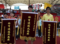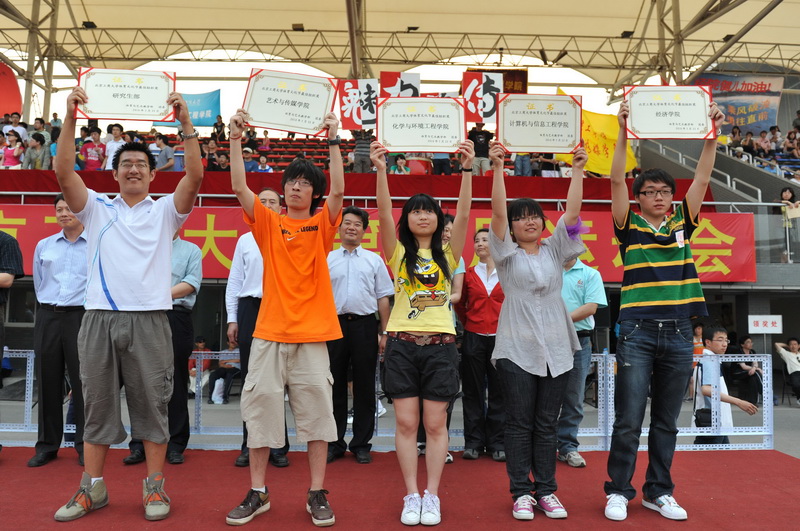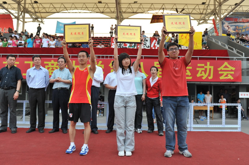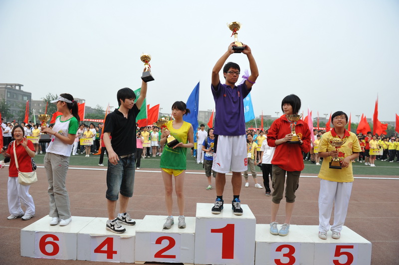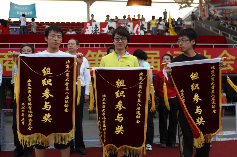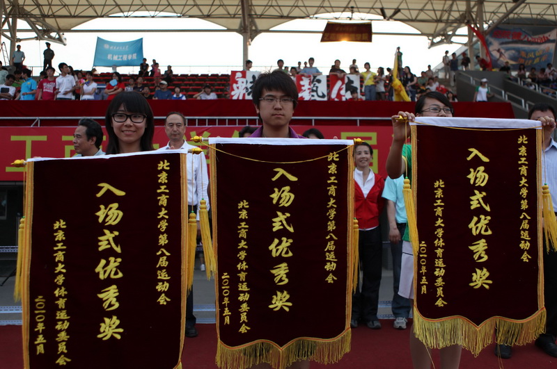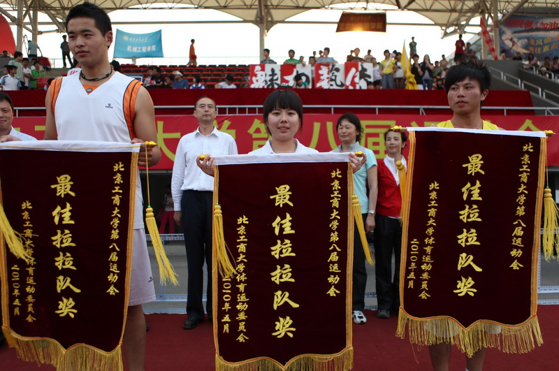 運動員列好了整齊的隊伍;獎杯、獎牌、錦旗等待著他們的主人;觀眾們也熱切地期待著比賽結果。體育與藝術教學部副主任陳新宣布了體育文化節組織獎獲獎單位、2009年《國家學生體質健康標準》測試成績優秀單位和我校體育代表隊獲得北京市大學生體育比賽的成績。體育與藝術教學部主任顧紅宣布本屆運動會比賽成績,宣傳部副部長袁小年宣布集體獎項,工會常務副主席韓寶龍宣布教工比賽成績。