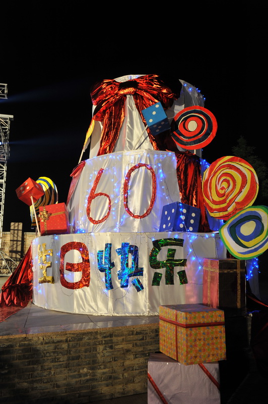 本次第六屆商之夜“印象•嘉年華”大型文藝匯演的舉辦將商學院獻禮校慶系列活動正式推向了高潮。除此之外,商院學子為迎接即將到來的母校六十歲生日還特意制作了兩件額外的禮物,一是在文藝匯演舞臺正前方,用一萬零六十個回收而來的飲料瓶蓋拼繪而成的學校建校60周年標識“騰飛的工商”巨幅圖案,它表達了商院人用一萬顆真心慶賀母校六十歲生日的真摯情感,同時也契合了“綠色校慶”的主題;另一個則是擺放在舞臺右側華美而精致的巨型蛋糕模型雕塑,它寓意著母校輝煌而厚重歷史,以及商院人對母校未來的美好祝福。