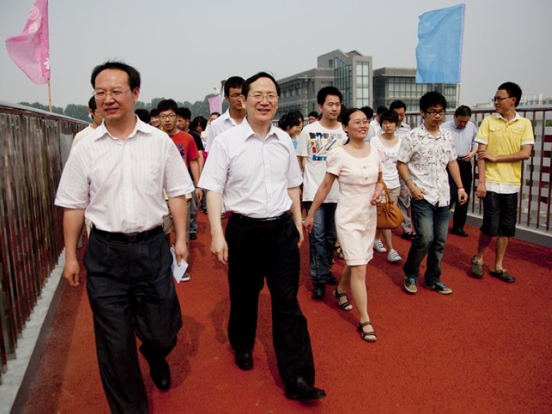 譚向勇校長致辭,指出與原有的天橋相比,新天橋更寬了,這使得東、西兩個校區的交通得以改善,對上下課高峰期的人群起到很好的分流作用。新天橋的落成也標志著良鄉校區二期工程規劃已全面到位,很快將全面展開。校長譚向勇還表示過街天橋的建設是校慶活動的重要組成部分,讓我們共同留下這歷史的鏡頭,為建設更加美好的校園環境一起努力。