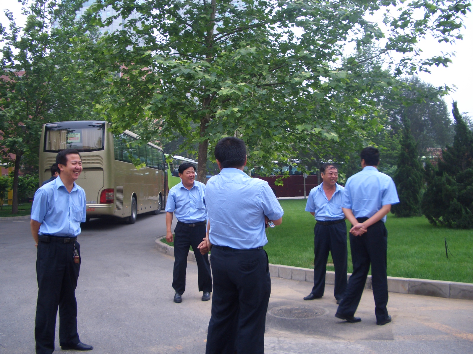 在某處的一個角落里傳來司機(jī)們爽朗的笑聲,他們?nèi)拷y(tǒng)一著裝、精神煥發(fā)。記者急忙上前“湊熱鬧”與他們攀談起來。“我們呀,不到6點就到車旁就位了,只要學(xué)校過個好生日,我們愿意盡到自己的心意與力量。”一位司機(jī)說道。另一位司機(jī)笑嘻嘻的主動上前告訴記者,我們就是要做到“標(biāo)準(zhǔn)服務(wù)、安全駕駛、為校增光。”說完,又是一陣大笑。車隊隊長也告訴記者,他們車隊為了今日已經(jīng)做了充分的準(zhǔn)備,在6點30之前已經(jīng)檢查過每輛車的車況,而且57輛大巴,各司其職,分別為各個學(xué)院的校友、教工、老干部、外校領(lǐng)導(dǎo)充當(dāng)“馬前鞍”。