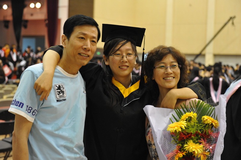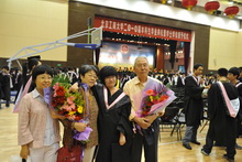 “天人合一”的雕塑前,有一對爸爸媽媽正和女兒一起照相,媽媽說:“畢業(yè)了,很欣慰,付出終于沒有白費。”爸爸說:“以后還是得沿著自己的軌道走,順其自然地發(fā)展。”媽媽又說:“還是得好好學(xué),不是還考研呢嗎!”終于,“咔嚓”幸福的POSE記錄下了孩子畢業(yè)的這一刻。“時間過得真快,現(xiàn)在看到孩子畢業(yè)還能想起當(dāng)初剛送她來上學(xué)時的情景,看著她一路自食其力的成長,作為父母真的很高興。”吳丹的爸爸媽媽這樣告訴記者。