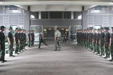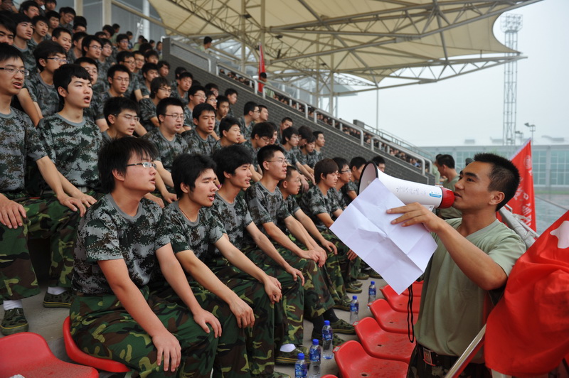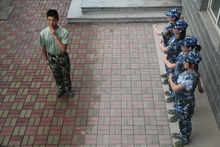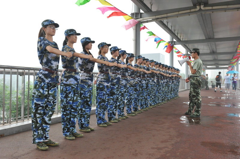 今天是我校2009級學生軍訓的第三天,軍訓團首次接受風雨洗禮。訓練非但沒有停止,反而更加精彩。拉歌、擒敵拳、站軍姿,一個都不少。