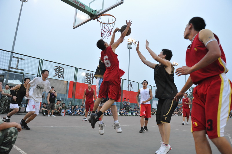 籃球場地,商院一營與計信二營奮勇拼搏,藝術與傳媒學院所在的四營與機械工程學院、法學院(馬克思主義學院)、外國語學院組成的混合五營激烈角逐,而經濟學院所在的三營與教官隊的比賽則是難分高下。賽場上,雙方搶斷、投籃不斷,精彩紛呈;賽場外,同學的加油聲更是一浪蓋過一浪。最終,二營、四營、教官隊分別戰(zhàn)勝對手,贏得了比賽。