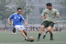 在17日傍晚舉行的教官與軍訓團一二三營的足球友誼賽中,教官們體現出了“班長”的風度,踢得十分小心,氣氛融洽;同學們則是年輕力盛、精力充沛,踢得非常精彩。在第二節(jié)與計信學院的比賽中,當有學生在拼搶中摔倒時,教官們都寧可放棄運球,回過頭來攙扶學生,觀賽同學則以熱烈的掌聲為友誼喝彩。比賽結束,商學院一粒進球,計信學院3粒進球,經濟學院1粒進球,最終,教官0:5負于學生。但教官們的風度卻令全場折服。