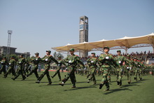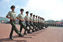 經過八天的刻苦訓練,20日,軍訓團進行了軍訓匯報演出。男女隊列動作整齊劃一,時常變換的動作造型贏得現場陣陣掌聲;擒敵拳隊伍氣勢震天,一招一式都鏗鏘有力;伴隨著激昂的樂曲和響亮的口號,分列式表演正式進行,各連隊邁著有力的步伐一一走過主席臺,展示了八天的訓練成果,展現了軍人的颯爽英姿。走過主席臺后,四營十四連一班的孟祥惠激動地說:“我為我們今天的表現自豪,大家都很努力,我們無愧于教官,無愧于8天的艱苦訓練!”