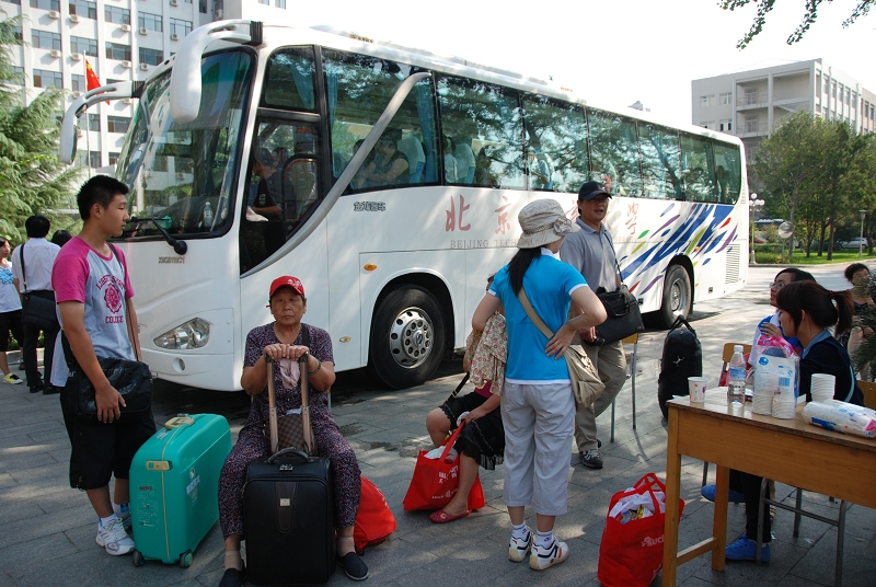 清晨6:20分,我們北工商的特色車隊已經等候在阜成路西校區門口,他們負責將我們可親的新生們載往良鄉校區去報到。守候在一旁的車隊隊長告訴記者,這次他們共派出10輛大巴為新生“保駕護航”,循環往復地將一批批家長和新生送往良鄉,并預計今日將會發車20余次,每輛大巴需來往兩趟。一大早,迎新車隊中就發生了一個小插曲,一位新生不小心將自己的手機落在返程的大巴中,車隊司機發現后立即與新生失主取得聯絡,并將手機送往我校保衛處進行妥善處理。當記者向車隊傳達他們的辛苦之時,車隊隊長笑道“沒什么的,迎新工作是學校的大事嘛,這也是我們的責任。”